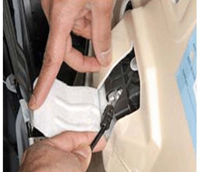 1. Inspect the inside and outside door handle for debris, that all parts are present and working properly and that they are securely attached.