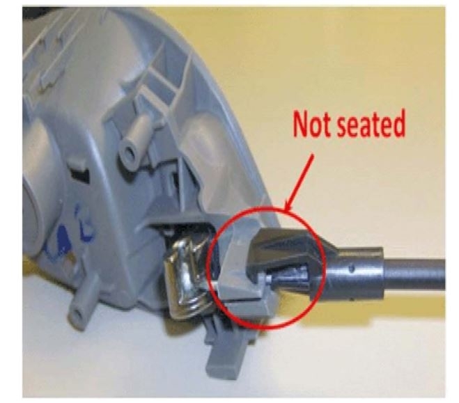 A third condition causing malfunction is the improper or incomplete attachment of the outside handle rod and inside handle rod/cable. If the outside handle rod clip is not completely secured, the clip can come unlatched and the outside handle will not function.