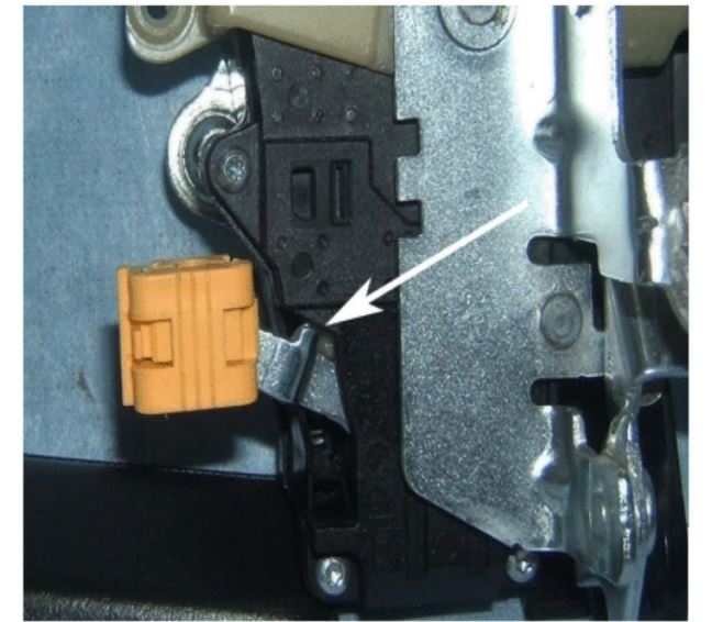 4. Push down on the top of the connector that attaches the wire harness to the latch to verify that it is properly connected. Check for proper function. If the connector had not been fully seated, use the appropriate labor code for the harness.