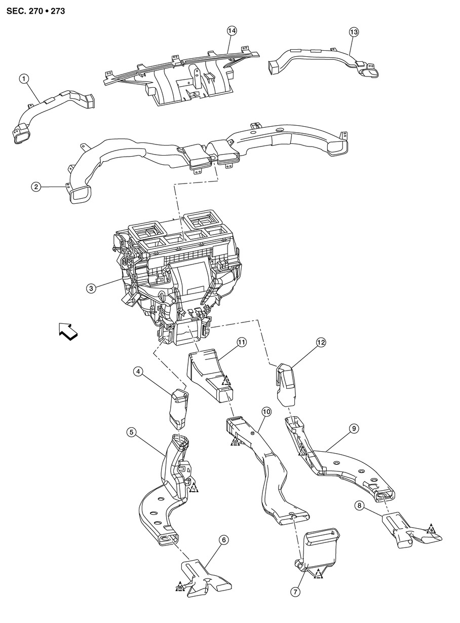 Remove the front floor connecting duct (LH). Refer to Exploded View.