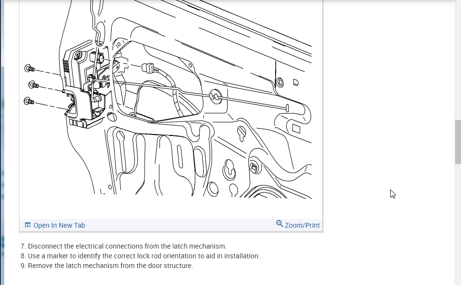 Below is the process from the manual to replace the actuator. More than likely I would remove the panel and just operate the locks to see what is going on inside the door.