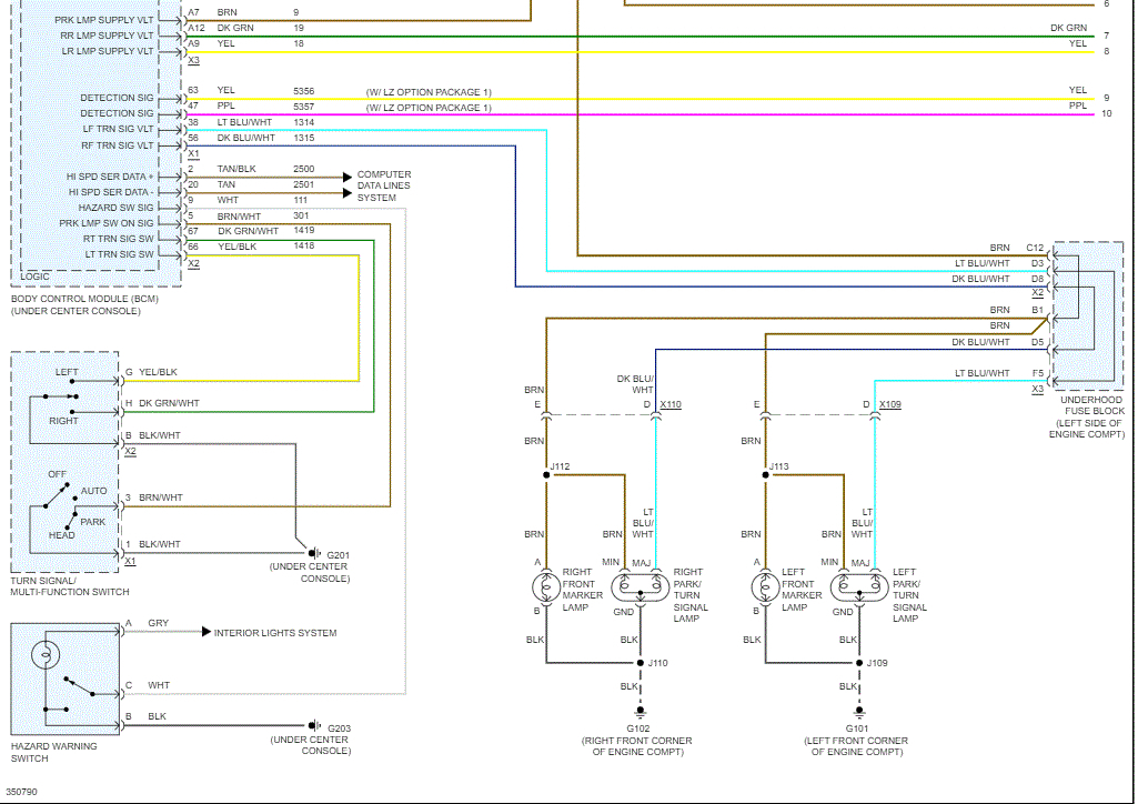 I attached the wiring schematic below for you as a reference. In the last pic is the left rear light info. I highlighted a couple of things for you. Note: that if this is an LZ, it is different than a vehicle without that package.