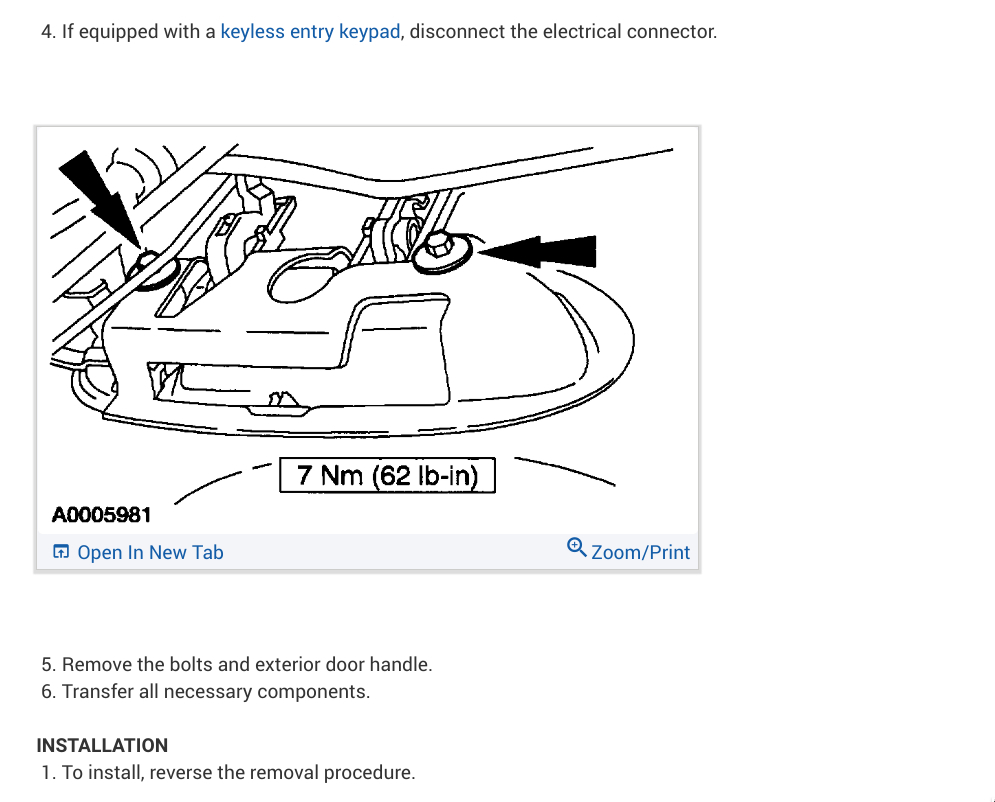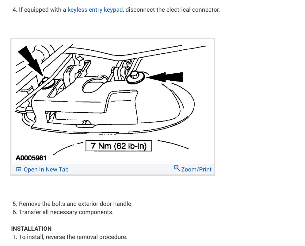 I took the door panel off and found that when you trip the handle a wire goes up and down in the latch but it doesn't trip the lock. Then I found a about 6" wire not hooked to anything. The one on the outside handle is hooked, the inside handle does work the lock, but I can't see how to get the outside lock to work the latch.