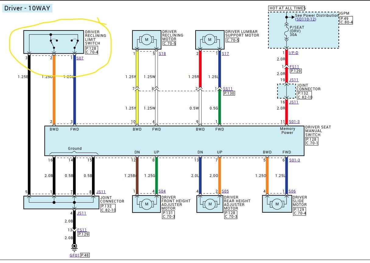 If you mean the seat will recline but not come back up and you don't have the memory seat option, it is either a failed switch or a problem with the limit switch. The system uses polarity reversal to control the motors but they have integrated the limit switches into the motors so it is possible that the repair would be to replace the motor. If you do have the memory seat option (seat switch plus switch in the door for the memory) you can add the memory module to the list of possible failed items. The attached are the information the service info has on the seat systems. The repair process they list is simply - use a scan tool to test the system and see if it is getting the power seat switch signals, if it is but the seat isn't moving correctly, replace the seat. They show the motors but not really anything about how they get replaced. I suspect it isn't that difficult but it means removing the cover at least to get to the various motors.