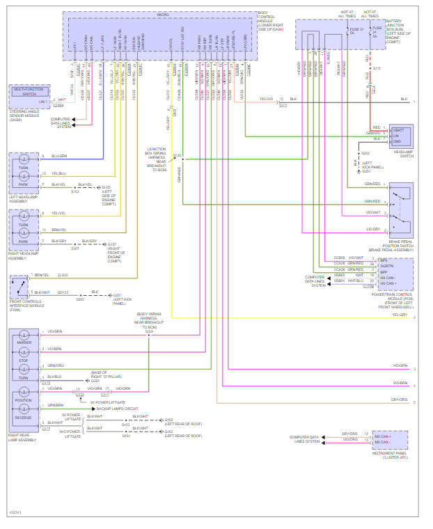 It sounds to me like you have a short to power with the marker light wire and the stop light wire. I am including all the wiring diagrams for the external lights on your vehicle. Hope this helps and let us know what you find out.