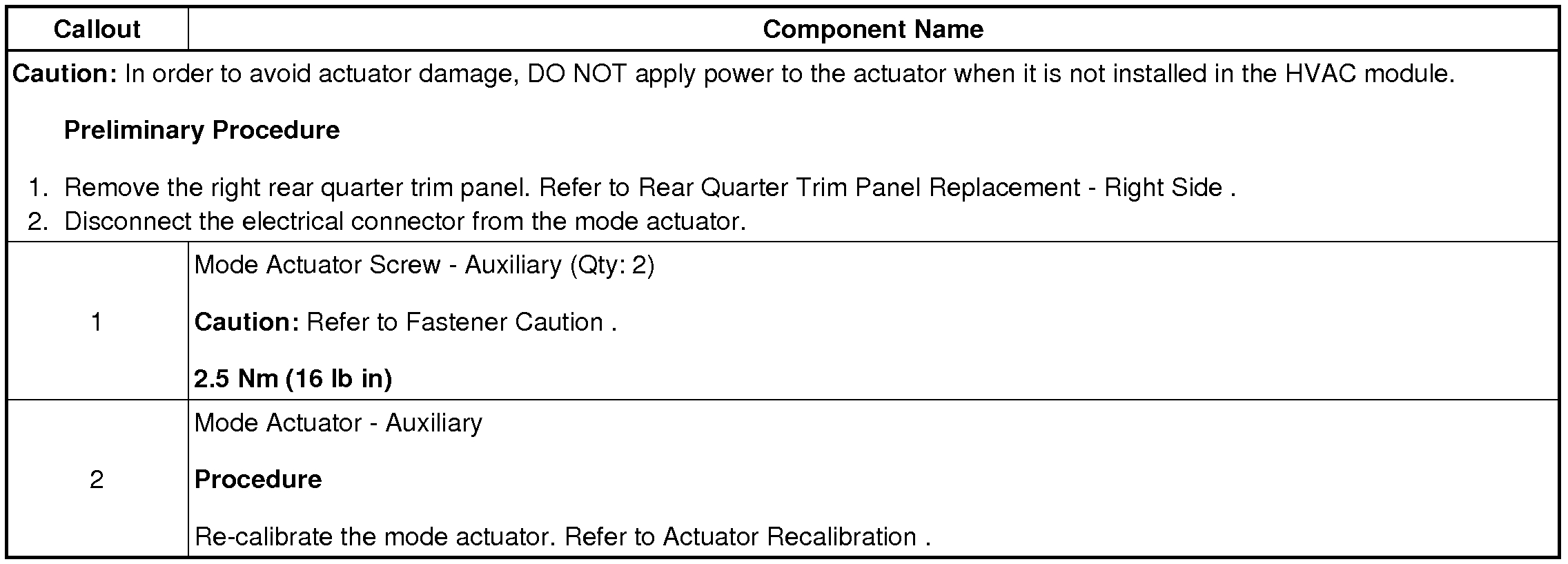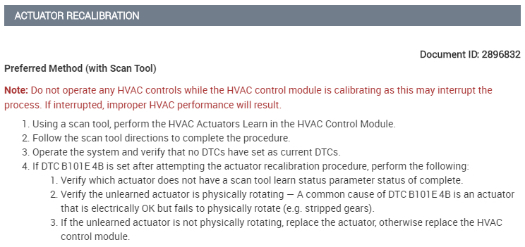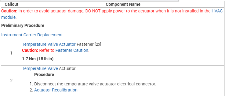 When replacing the HVAC actuator it will be necessary to allow the HVAC control module to perform a calibration process. When installing the HVAC actuator be sure to perform one of the following: