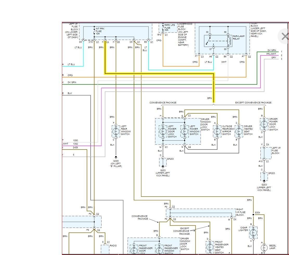 It looks like you have a brown wire in each of those connectors which means you have the convenience group package. If so, this brown wire should be your lighting circuit. If you look at the wiring diagram the driver and passenger side lighting come off the same fuse. So if the passenger side is working then the fuse is okay.