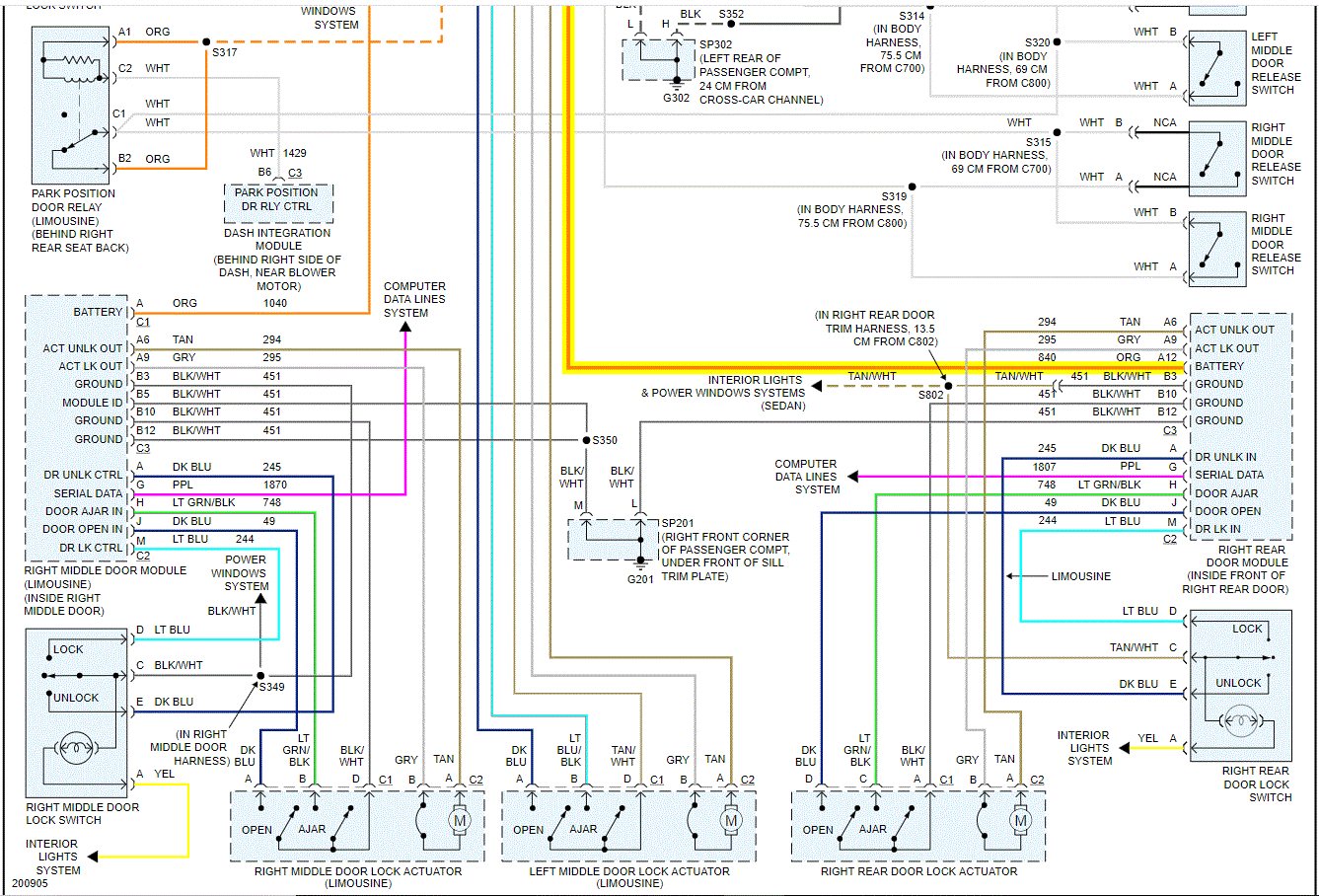 I attached the schematics for the lock system. Power for the door module is for both the locks and window.