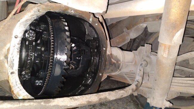 It's very loud, sounds like someone is hitting the floorboard with a sledgehammer. I pulled the rear diff cover off and didn't see any metal shavings or any broken gears. The ring and pinion looked good, but some of the spider gears looked pitted. I dropped the front driveshaft, and the noise was still present. It only happens under load, and occurs when driving straight, not necessarily when turning. I engaged 4x4 and the noise was still there in 4HI, but not in 4LO. It's the vehicle listed above with 4:10 limited slip rear end.