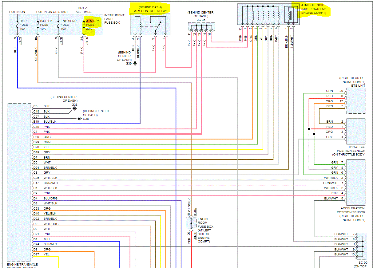 If that checks good, locate the ATM relay under the dash on the driver's side. Here is a link that explains how to test a relay.