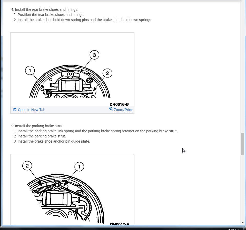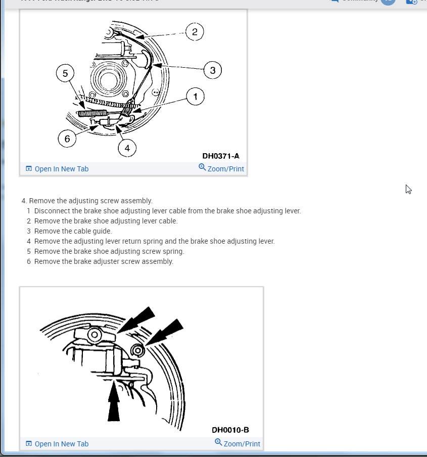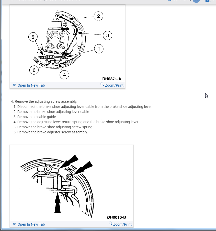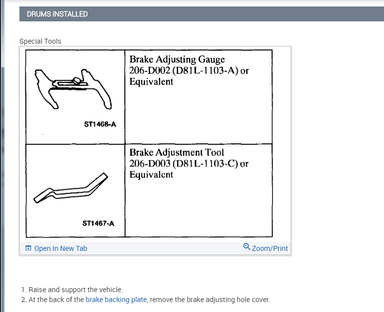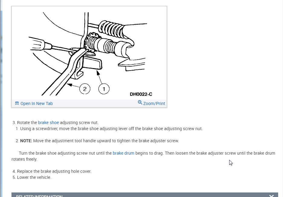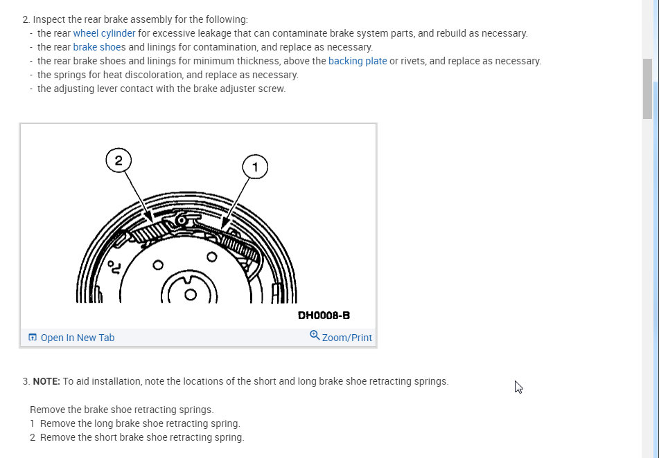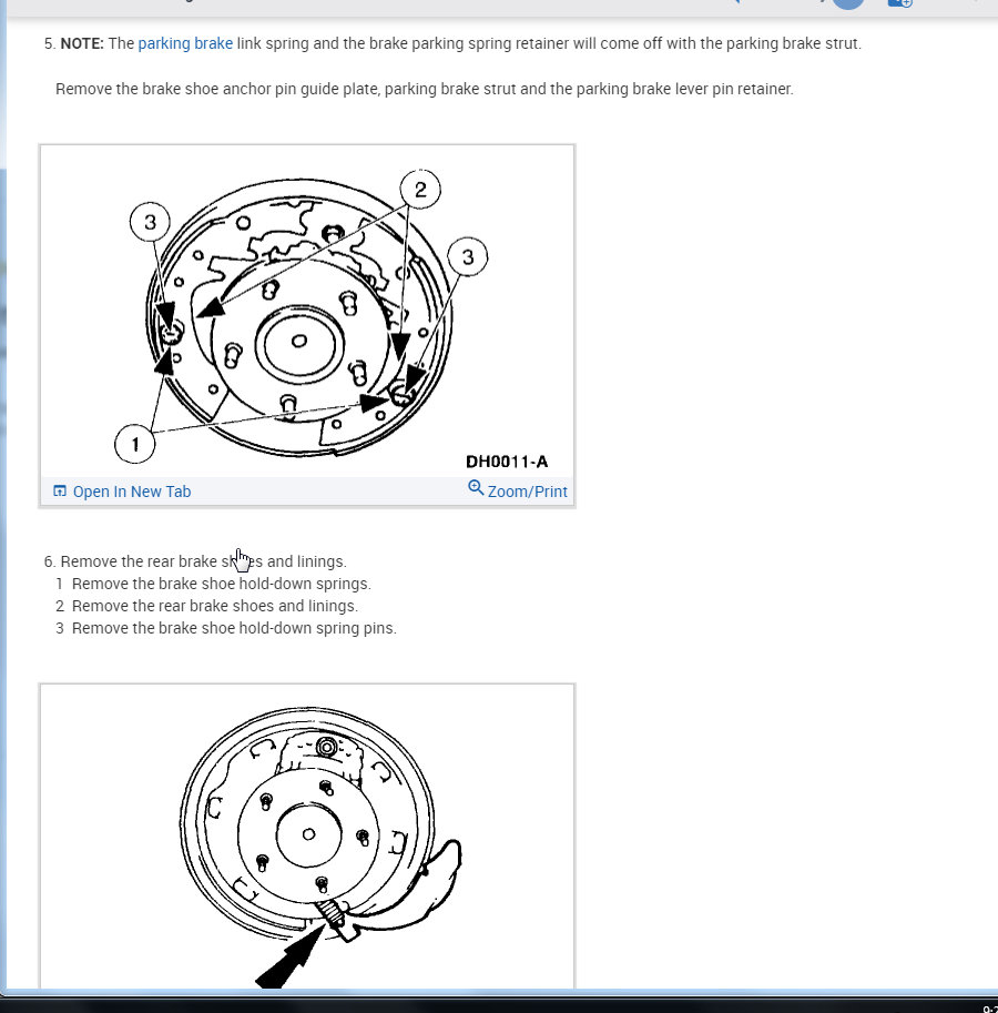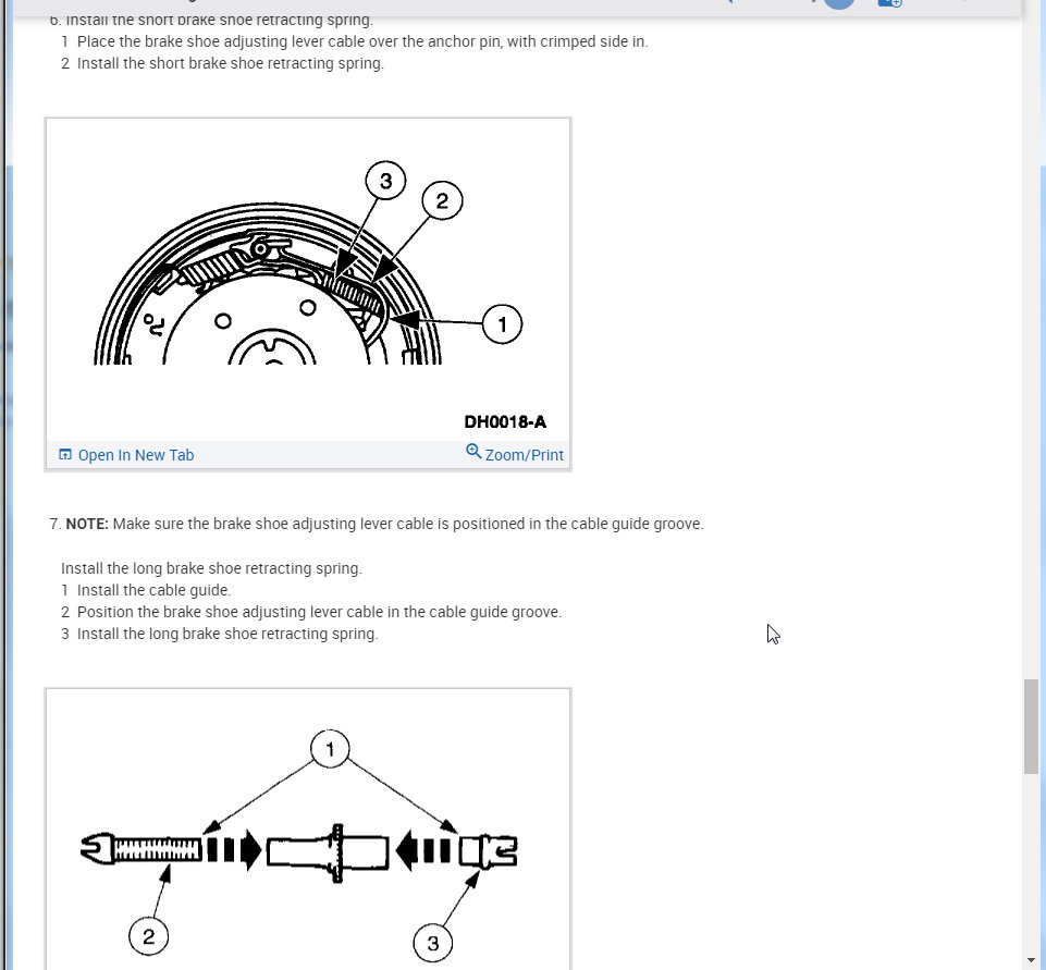 The first set of directions are for drum removal, brake shoe adjustment, and inspection of the drum itself. The second set of directions are for brake shoe replacement. The attached pics correlate with the directions.