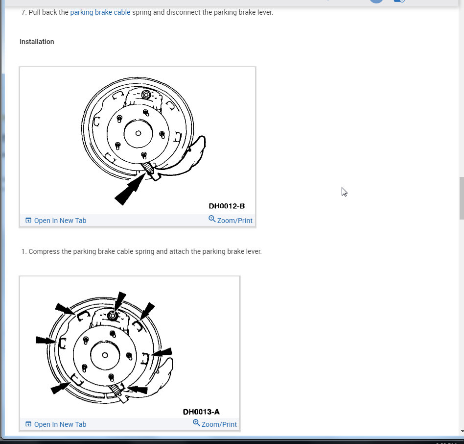7. Pull back the parking brake cable spring and disconnect the parking brake lever.