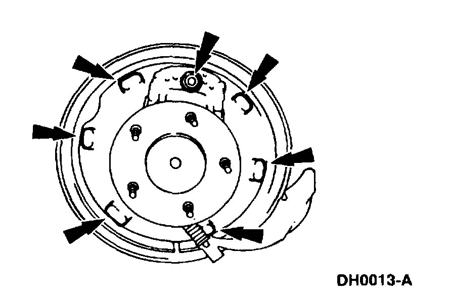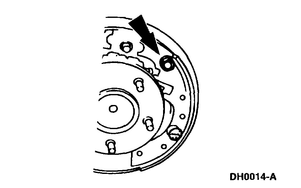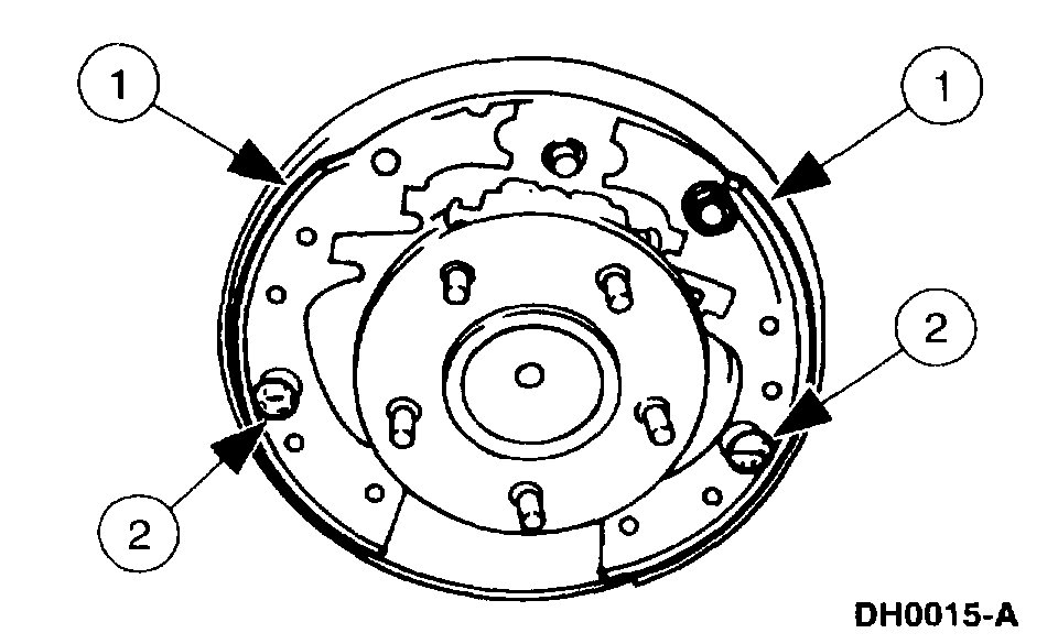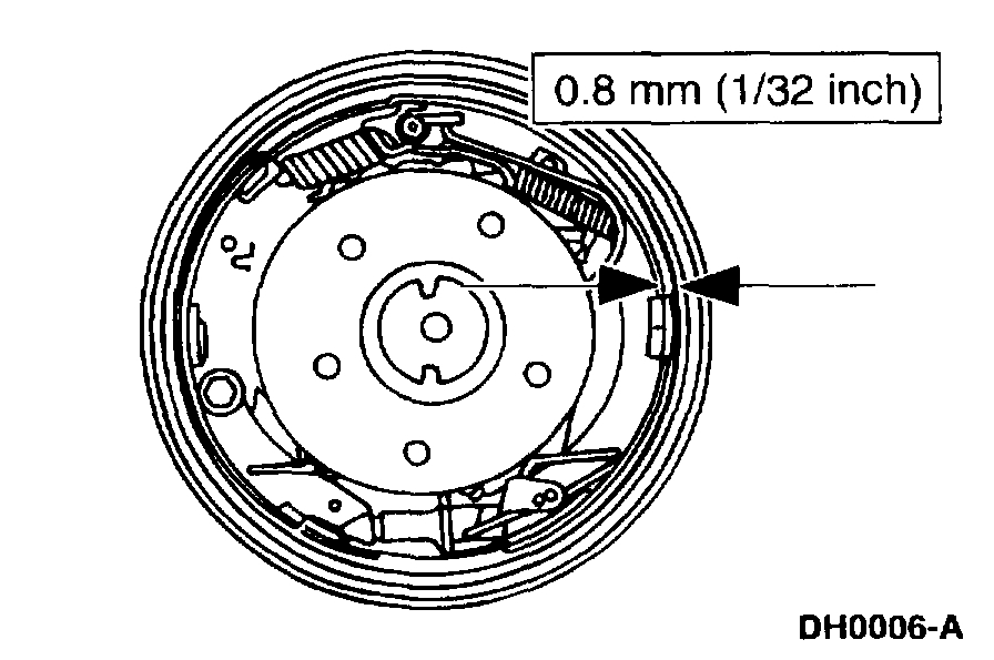 - the rear brake shoes and linings for minimum thickness, above the backing plate or rivets, and replace as necessary.