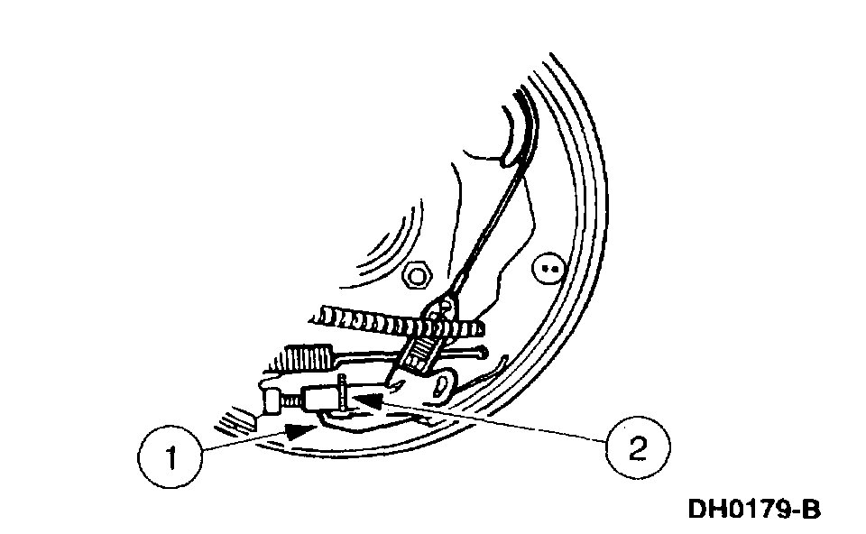 2 NOTE: Move the adjustment tool handle downward to loosen the brake shoe adjusting screw nut.