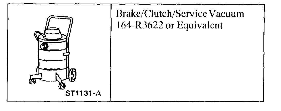 WARNING: Asbestos fiber dust can be present on brake and clutch assemblies and is hazardous to health if inhaled. Brake and clutch assemblies must be cleaned using a vacuum cleaner recommended for use with asbestos fibers, such as a brake/clutch/service vacuum. The bag must be labeled per OSHA instructions, sealed, and the trash hauler notified as to the bag's contents.