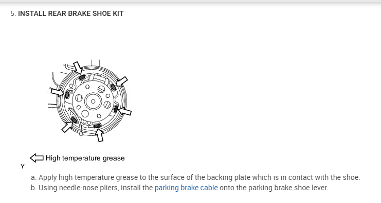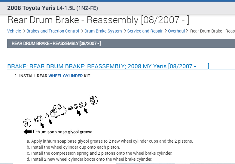 If you look below, the directions specific to your vehicle are included. Note they include replacing the wheel cylinder, but that is how they do it in the manual.