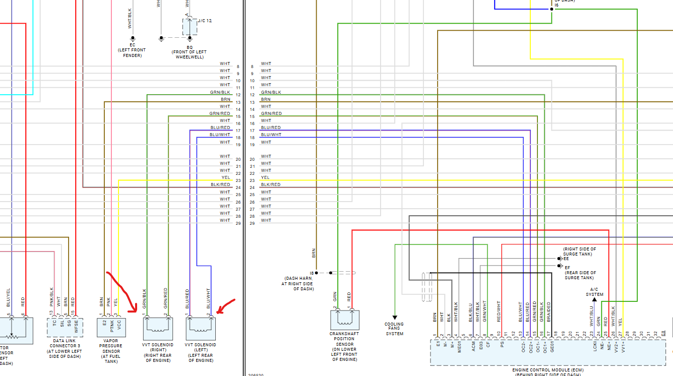 Lt Side (Bank 2) - Disconnected and checked wires for continuity between solenoid plug to ECU plug = Less than 1 Ohm