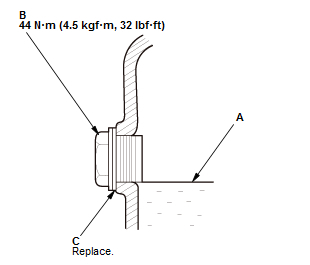 Install the filler plug (B) using a new sealing washer (C).
