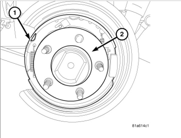 Rotate rotor to verify that the park brake shoes are not dragging on the brake drum. If park brake shoes are dragging, remove rotor and back off star wheel adjuster one notch and recheck for brake shoe drag against drum. Continue with the previous step until brake shoes are not dragging on brake drum.