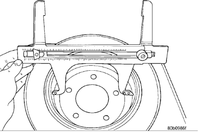 Place Gauge, Brake Shoe, Special Tool C-3919 (2) , or equivalent over the park brake shoes. The special tool must be located diagonally across at the top of one shoe and bottom of opposite shoe (widest point) of the park brake shoes.
