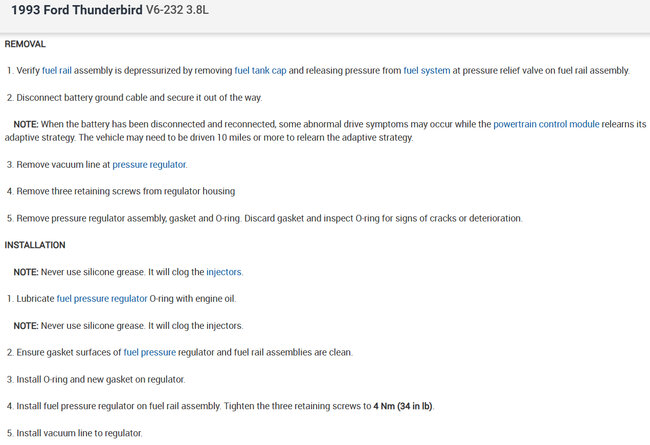 The fuel pressure regulator is on the fuel rail under the hood on the engine. Here are the instructions on how to remove it and its location as well. Check out the images (below). Let us know if you need anything else.