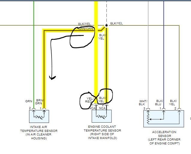 He made a bridge from the positive of the battery to the green wire of the ECT sensor. He heard a little "explosion" somewhere on the engine. When he try to start the engine, the engine won't start. Then he put an scanner on the obdii diagnosis plug. The car start, but very roughly, very roughly.