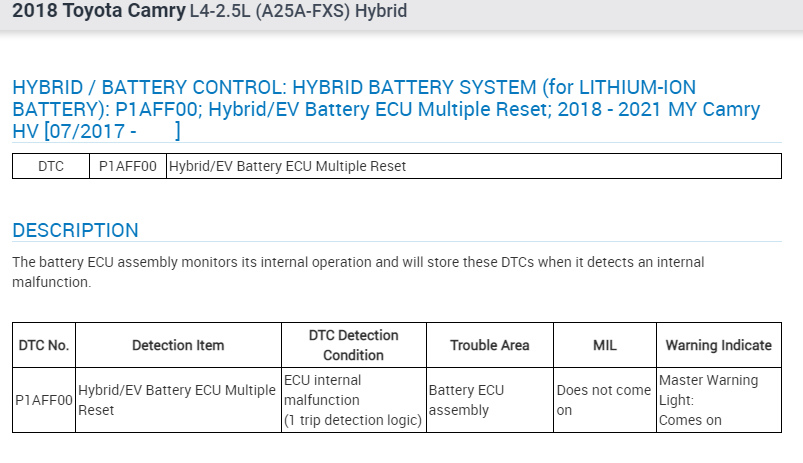Well, the code showed to be for the Hybrid Camry. And that procedure is for the ECU of the Hybrid system.