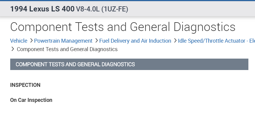In the diagrams down below I have included the general on vehicle inspection guide for your vehicle's IAC from the vehicle manufacturer. Please go through this guide, see if the IAC is working properly, and if not, please get back to us with what it is specifically doing. We can go from there.
