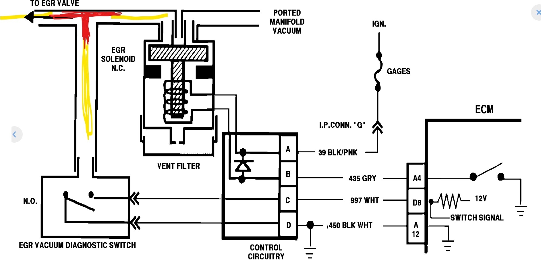 If you mean the electric solenoid that is in the vacuum line, the 2.8 version should have 3 vacuum lines on it. One comes from the manifold to the solenoid, then there should be one going to the EGR plus another on that same outlet that goes back to the controller and triggers the vacuum switch in it. The V8 version only has 2 connections on it so they are not interchangeable. However, it might be possible to make the V8 version work if you used pieces removed from the 2.8 version and added a T fitting to the line going to the EGR.
