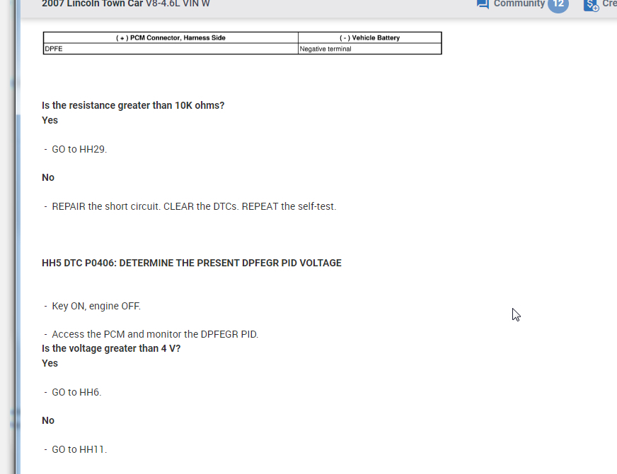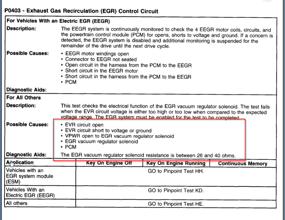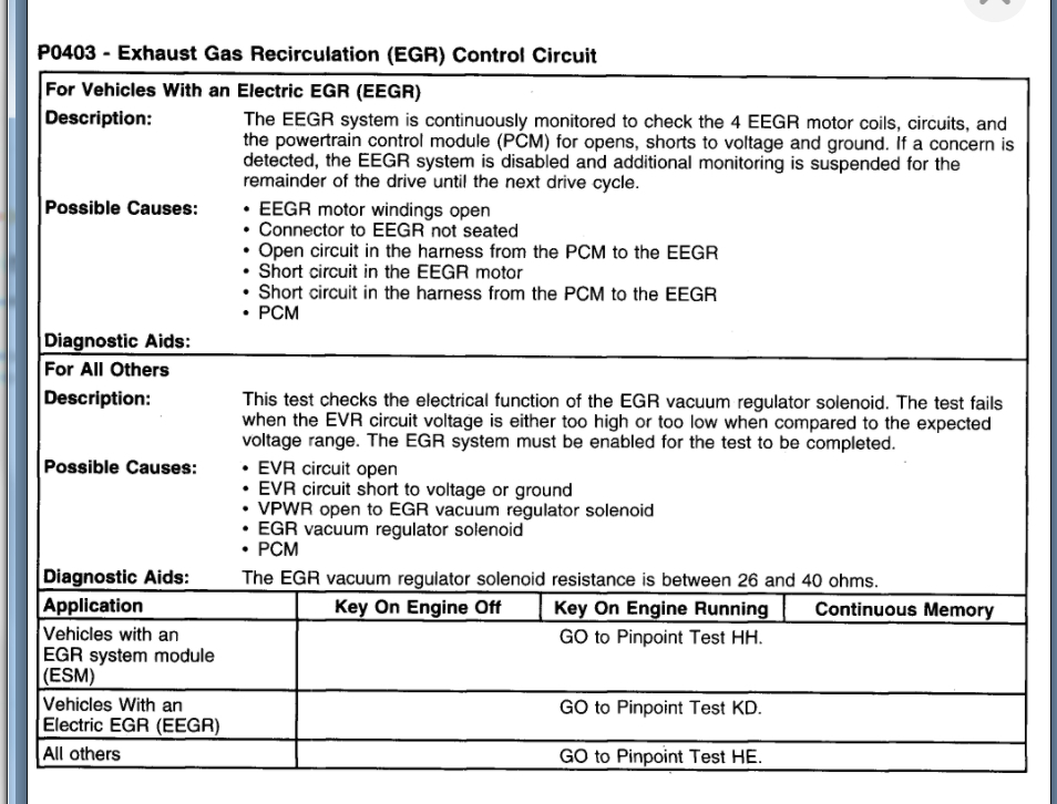 So let's walk through this testing to see if we can figure something out. Your codes are 0402 and 0403. As you can see on step one that sends you to HH12 for the P0402 and HH 22 for P0403.
