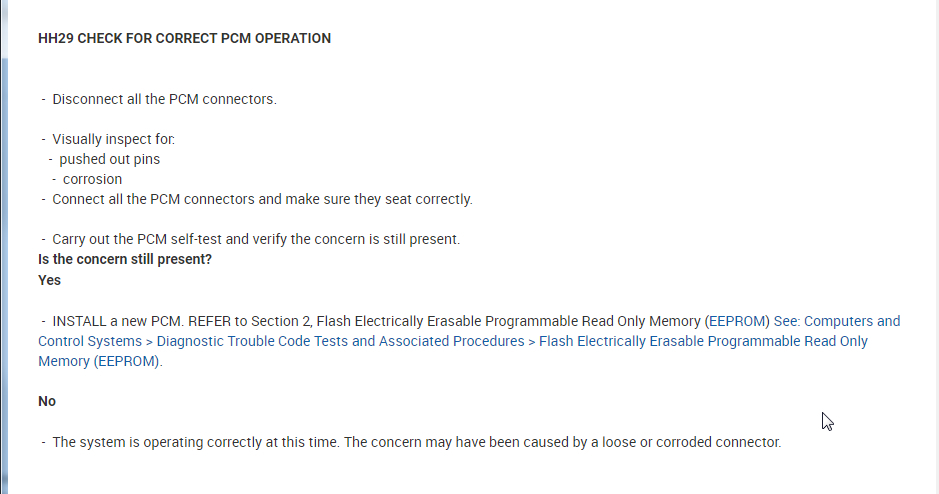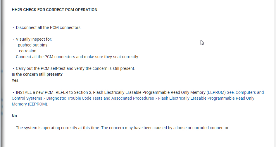 HH29 is telling you to inspect the PCM for any visual issues like corrosion or pin/terminal issues. If not, put a PCM in it.