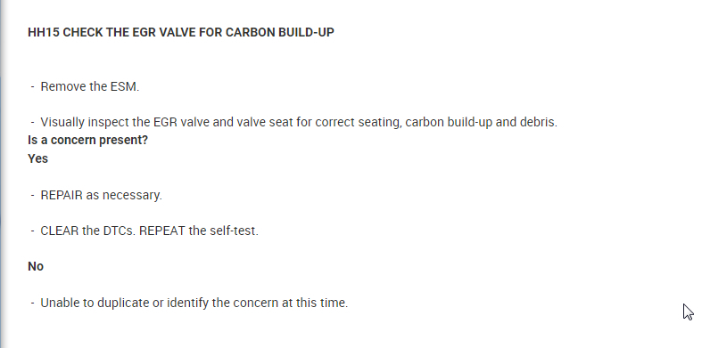 HH15 is asking you to inspect the EGR valve for carbon build up. If you find it, you can clean it or replace it. If there is none then the issue is not currently present.