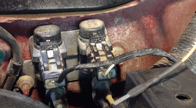 I can see the vacuum lines attached to the bottom of one of them, can you follow where the lines go for each. I'll try to find a wiring diagram to match up the colors and see if I can identify them by that. They are definitely Solenoids to divert vacuum to different places. Do the wires on the one on the right have Stripes on the wires, a solid color with a stripe in the middle? Looks like Grey/Black maybe?