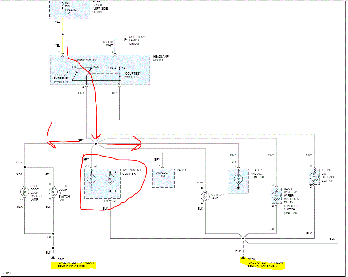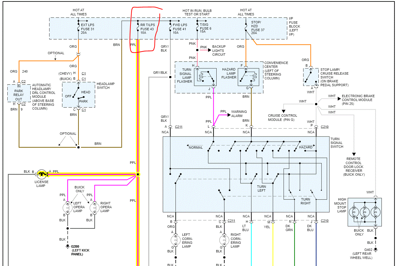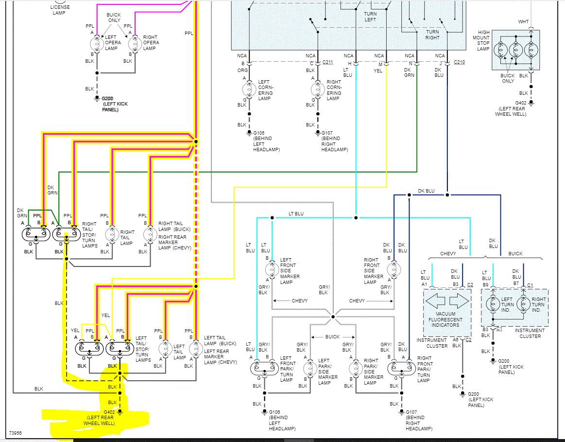 IF you look below, I attached the wiring schematic for the rear lights. I had to cut it in half to make it readable, but I did overlap and highlight areas of interest.