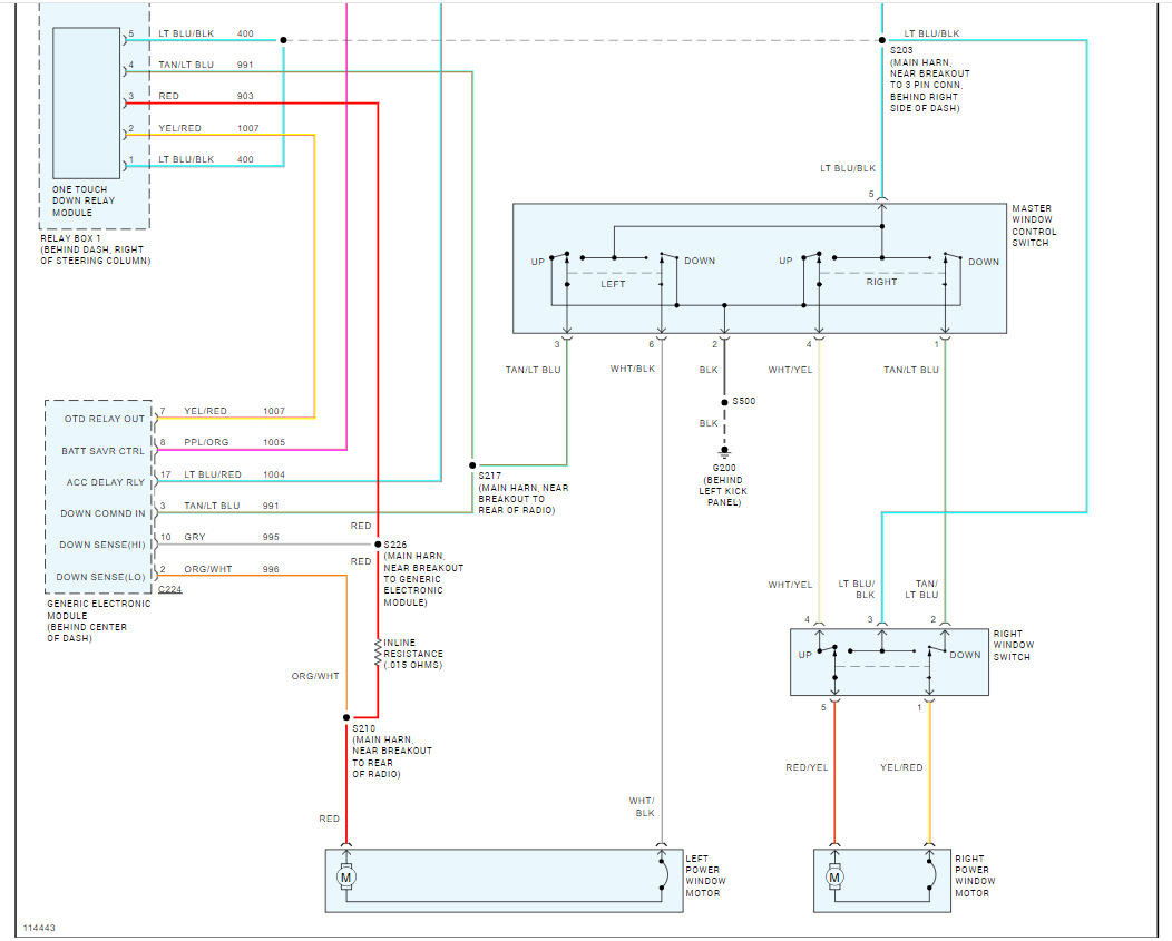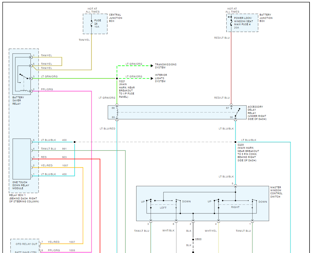 The brake lights do not go through the BCM or as ford call it the GEM (generic electronic module) but the windows do. Here are the window wiring diagrams so you can see how the system works. I have seen the main window switch (drivers' side) go and cause the passenger side window to stop working. Please start a new thread for the brake light issue.