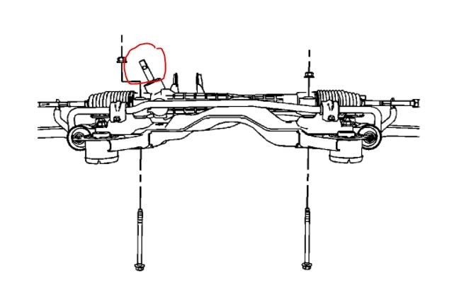 5. Remove the steering gear bolts, nuts, and washers from the steering gear.