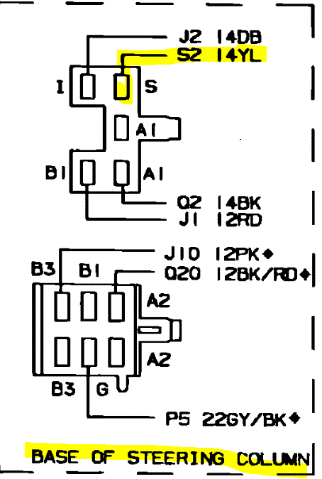 Here is my issue. I'm not seeing the wire colors you mentioned. I did find the yellow and need to know where you are checking it. There is a connector at the bottom of the steering column that may have failed or corroded. See pic 1 below. Is that where you are checking power or right at the switch?