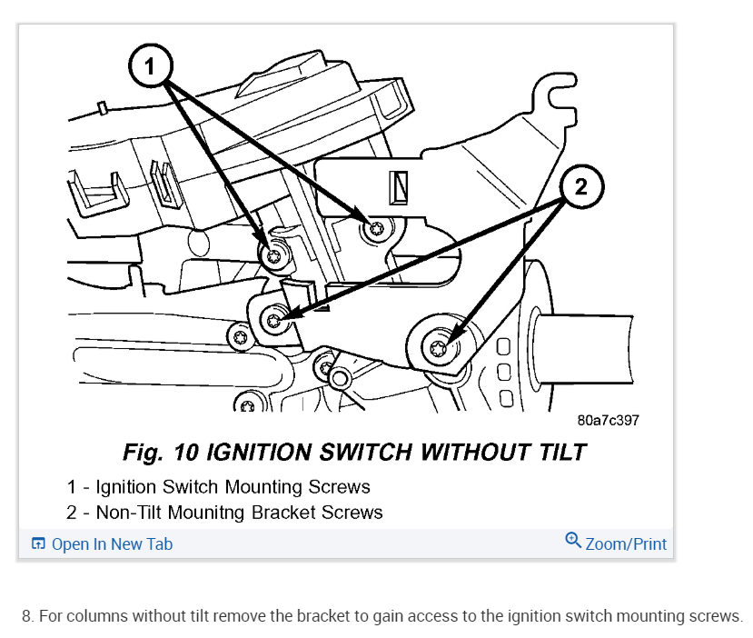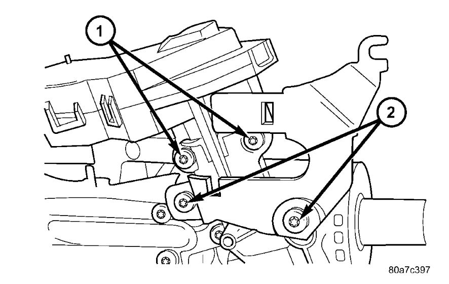 8. For columns without tilt remove the bracket (2) to gain access to the ignition switch mounting screws (2).