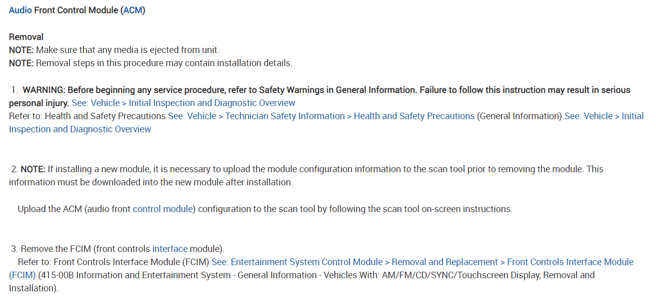 The FACM is located in the center of the dash. Here are the instructions on how to replace the unit in case a code comes up for it. Check out the images (below). Please let us know what happens.