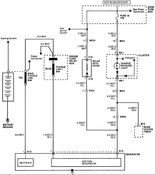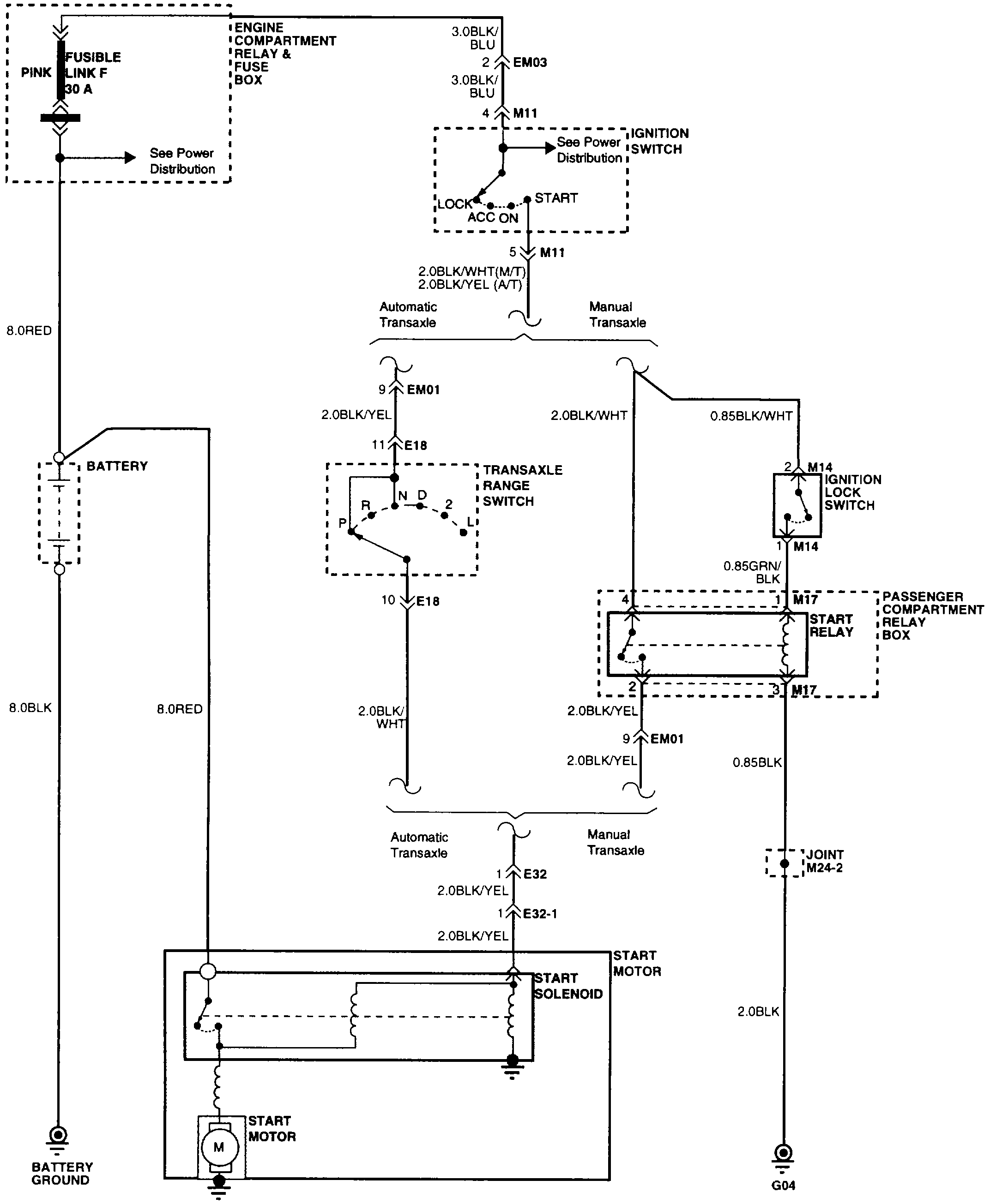Below I attached the starting circuit and relay box. E29 is the horn relay.