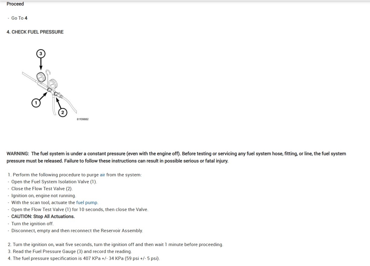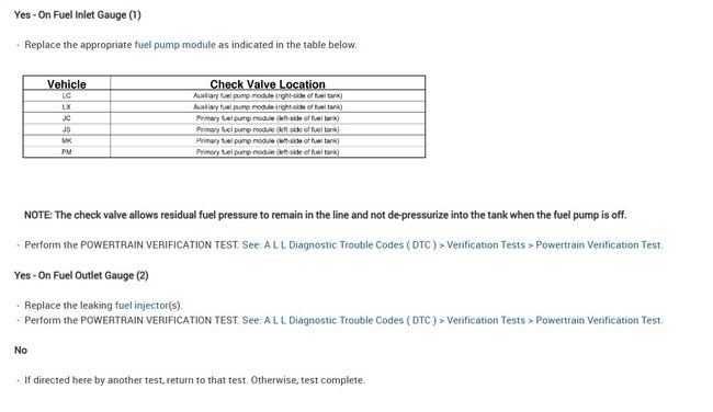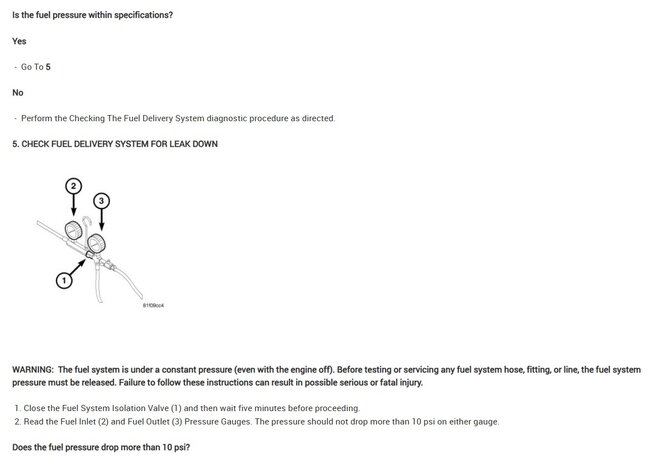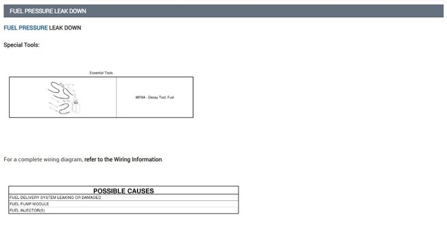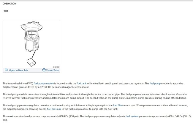 Hello, so your normal fuel pressure spec is 59psi +/-5psi. If it's not holding pressure after the key is off either the pump's check valve is stuck open allowing fuel to leak back into the tank, or a fuel injector is leaking fuel into a cylinder, in the case of an injector leaking that much fuel down you would notice a ton of white/blue smoke at start up or even worse the cylinder would hydro-lock because a liquid cannot be compressed. So, if you don't see any smoke at start up then its most likely something to do with the fuel pump itself or the fuel lines which you would be able to see. The Fuel Pressure regulator is built into the pump in this design so it's in the tank with the pump. I'll put the fuel pump operations service info up for you.