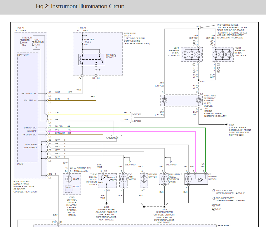 Hello. I have the car listed above GT model. The lower dash board lights, shift console and tailgate lights do not come on. I replaced the fuse and rely switch and lights still do not come on. Can you tell what is wrong and how to fix it?