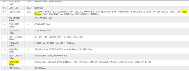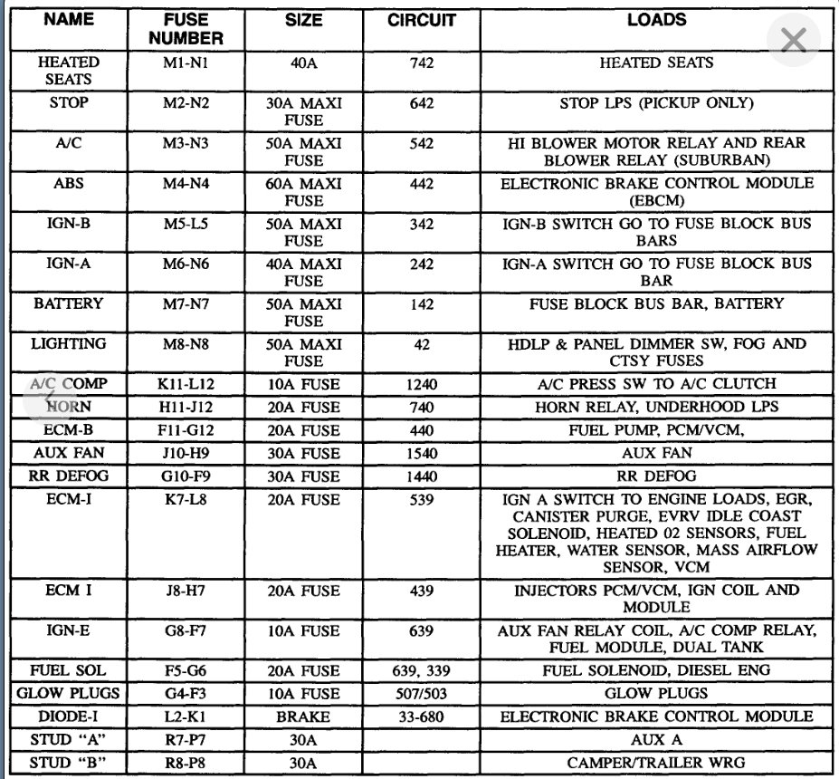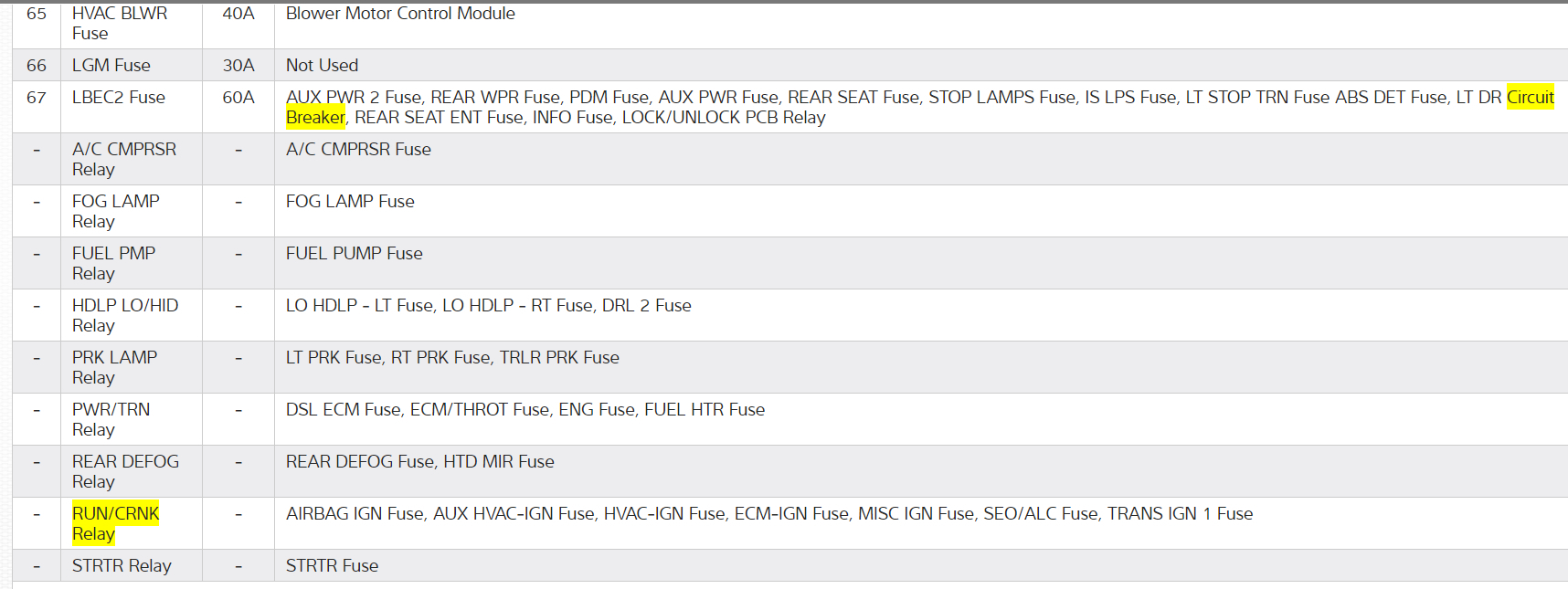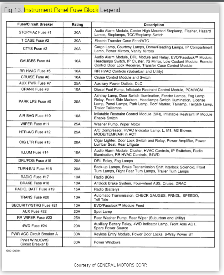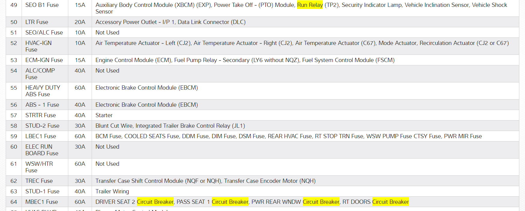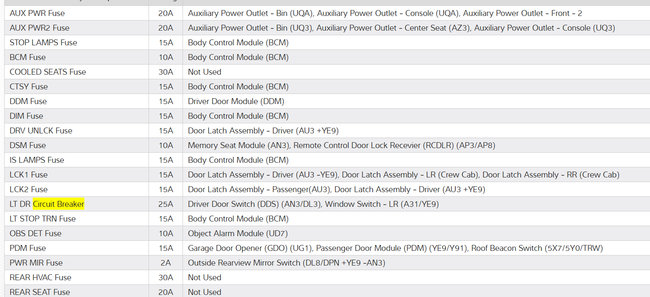B - PWR WDOS 20 Amp - C/K Reg. & Ext. Cab (Circuit Breaker) Power Windows 30 Amp - C/K Crew Cab (Circuit Breaker) Power Windows