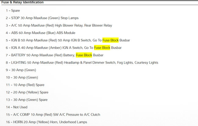 5 - IGN B 50 Amp Maxifuse (Red) 50 Amp IGN B Switch, Go To Fuse Block Busbar