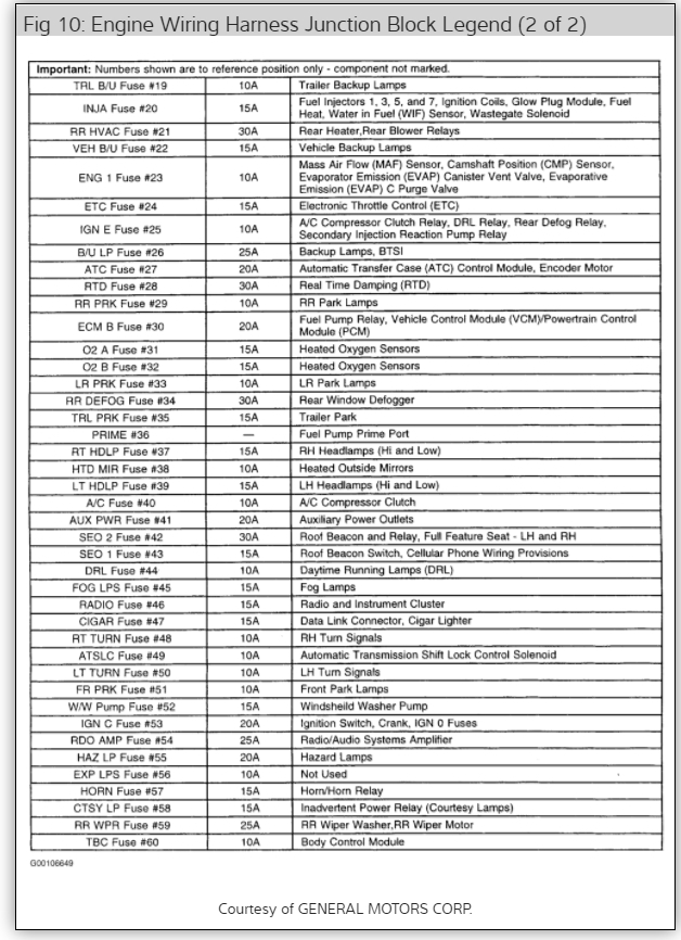 8 - Crank 10 Amp (Red) Diesel Fuel Pump, DERM ECM (Air Bag), PCM