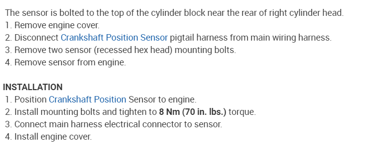 Here is a guide to help and the location of the crankshaft angle sensor so you can check it out: