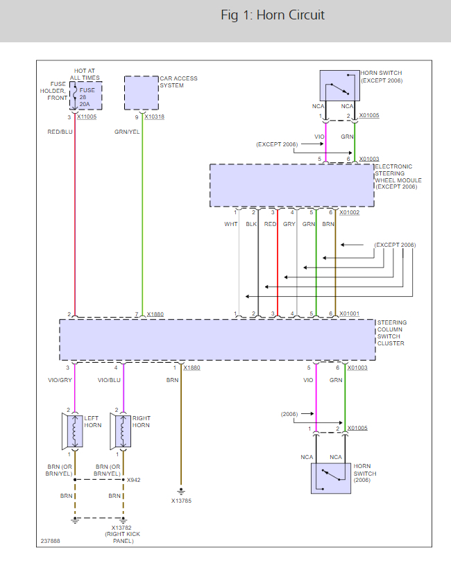 I was in the middle of driving and all of the sudden my car horn went on. The horn stays on unless I put the car in park and turn it off. As soon as I turn my key to turn the car back on, the horn starts up again. How do I get it to turn off?