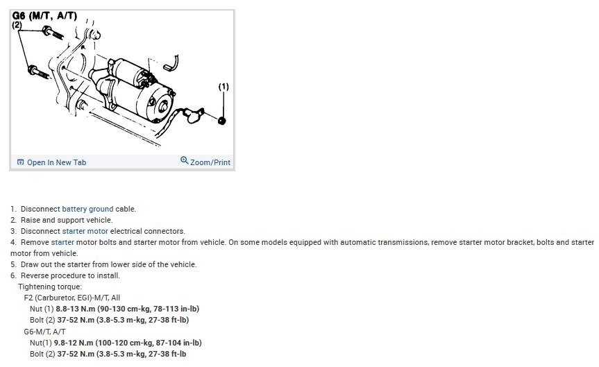 I'm attaching AllData's instructions on how to remove and reinstall the starter as well as their diagram showing where to find it. Please let me know if there's anything else that you need from me.