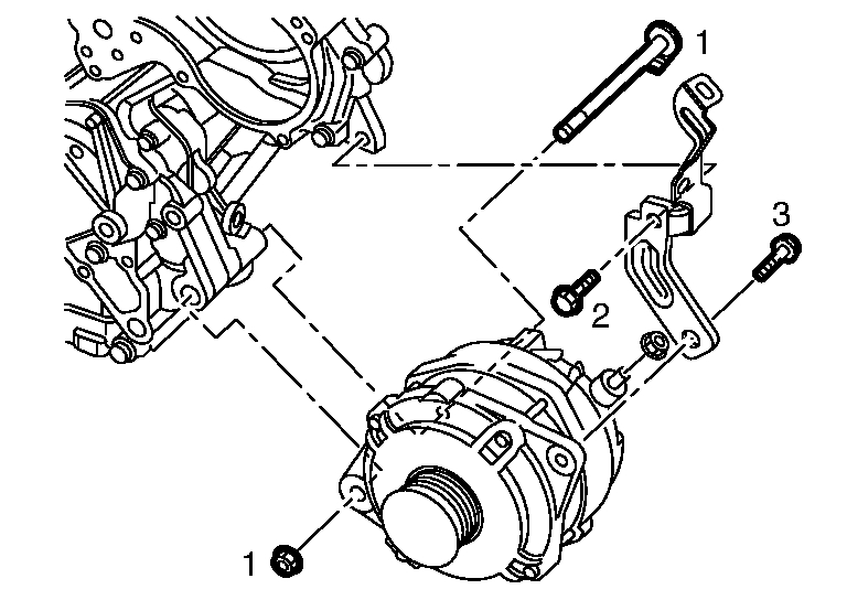 - Temporarily tighten all of alternator bolt and nuts. And then tighten them in numerical order shown in the figure.