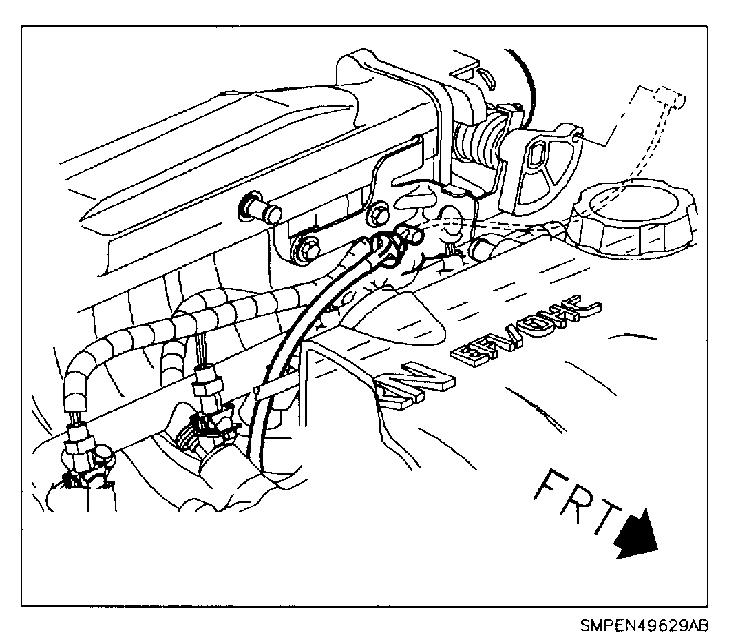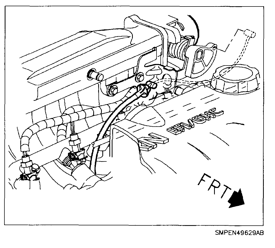 3. Remove air inlet tube and air filter cover, disconnecting fresh air hose at cam cover.